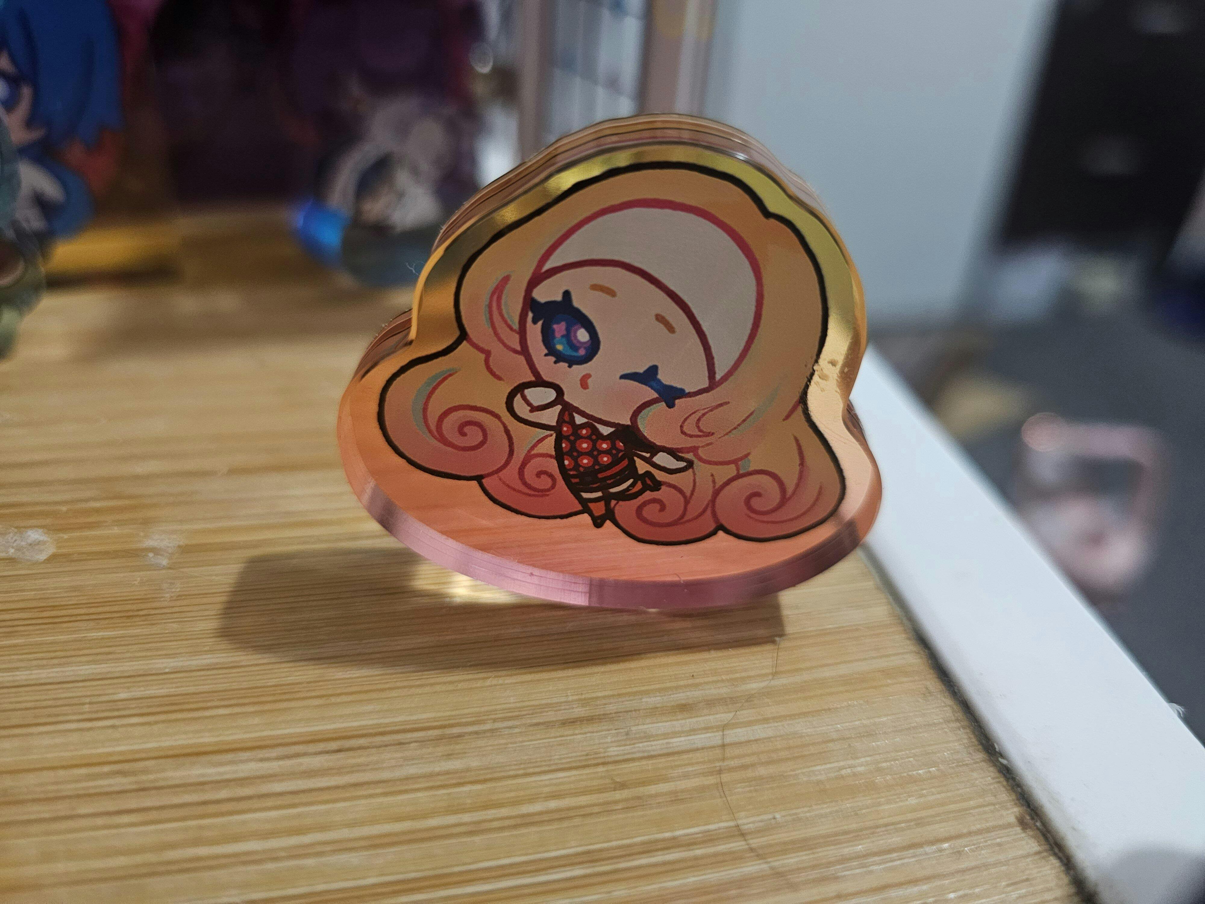 Add a touch of fun to your desk decor with our custom thick acrylic wobble standees! These high-quality and transparent standees make for unique and quirky gifts. Give your workspace some personality with this playful addition.